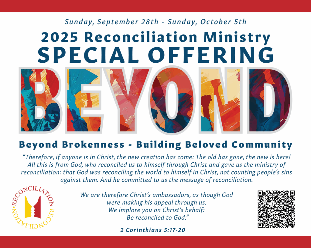 Reconciliation Offering celebrates our journey toward wholeness and imagining a world where racism is dismantled and all of God’s children can flourish. The offering is received on Sundays September 28th and October 5th.